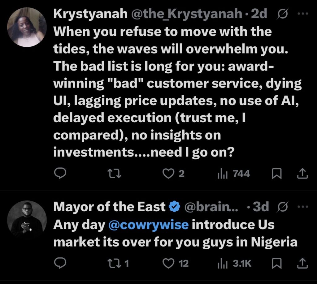 Here’s where it gets interesting. A large portion of the audience didn’t agree that the call-out was necessary. Many quickly shifted away from the copy debate and towards Bamboo’s customer experience. The comments were riddled with complaints about their customer service and worse, claims that Bamboo has bigger problems as many believe Cowrywise is edging them out on UI and overall customer experience.